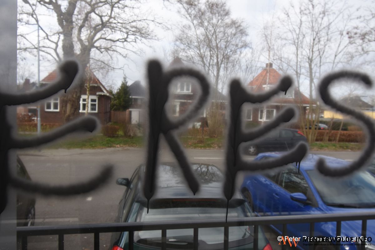 Hoofdingang politiebureau Veendam beklad met graffiti