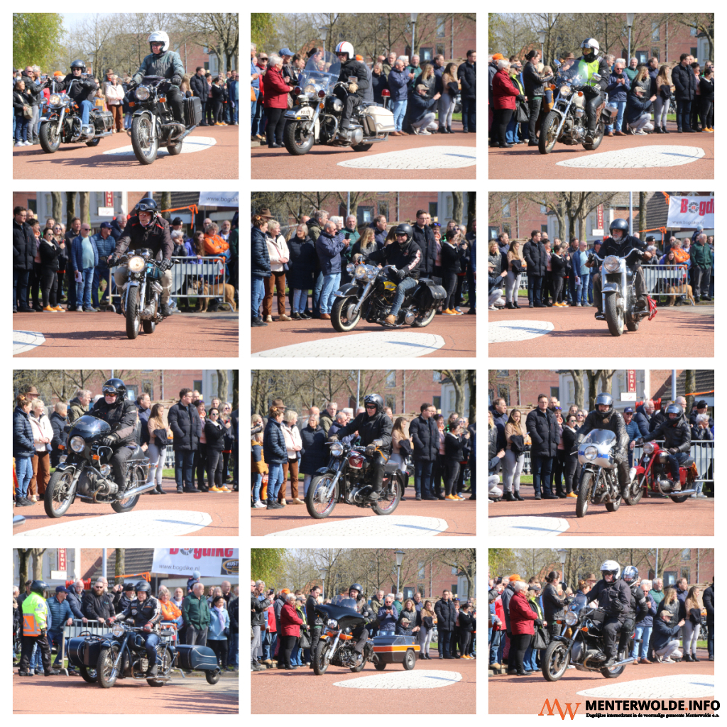 Bij de start is altijd veel publiek aanwezig. Toeschouwers bekijken de verzameling klassieke motoren. Dat zijn onder meer merken als BSA, Norton, Harley en Sparta.
