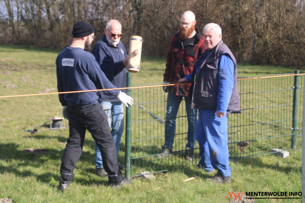 Foto boven: Nieuwe laag houtsnippers voor looppaden in Speelbos Meeden Foto onder: Kinderen kunnen weer buiten spelen bij Heartbeat dankzij nieuw hekwerk