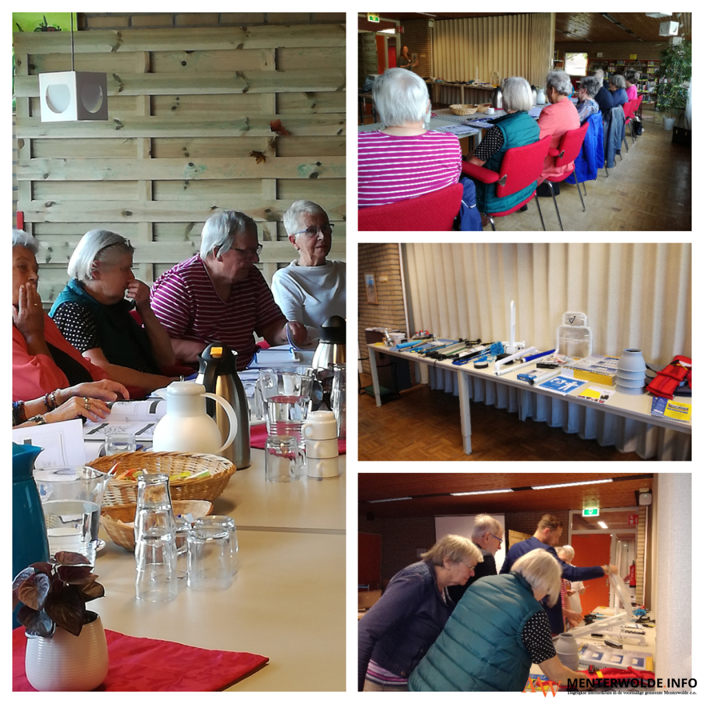 Ergotherapeute Sabine Scheeve van Ergotherapiepraktijk Oldambt had voor de deelnemers tal van hulpmiddelen meegenomen. Zo kregen die een idee op welke manier ze veilig thuis kunnen blijven wonen.