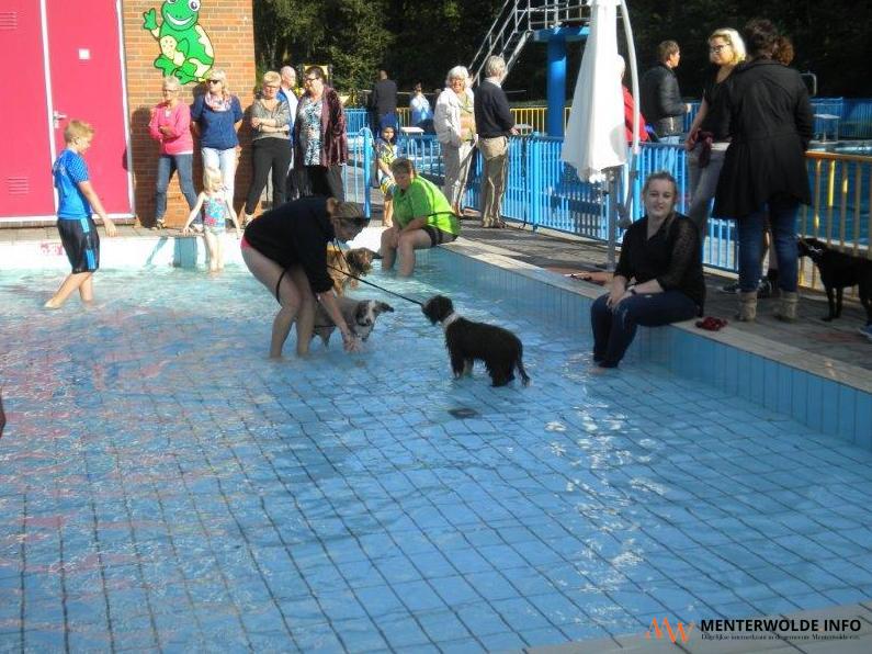 Zwembad De Kolck in Meeden heeft het seizoen vanmiddag afgesloten met de activiteit hondenplons. Vijftien Meedenaren kwamen met hun viervoeter naar het bad om nog eenmaal 'een nat pak' te halen. De honden hadden volop schik. De Dorpscoöperatie Meeden, die het bad met tientallen vrijwilligers runt, is dik tevreden met de 13.500 zwemmers die dit seizoen naar De Kolck kwamen.