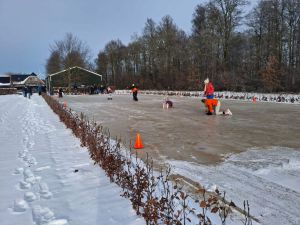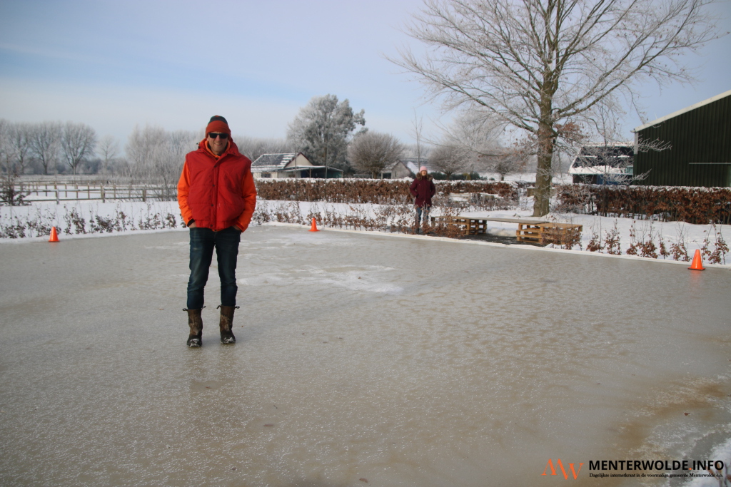 Maar vandaag dus wel. Het ijs is 6 centimeter dik. Gisteren was dat nog maar enkele centimeters. Bessembinders heeft de 'baan' gevuld met 10 centimeter water.