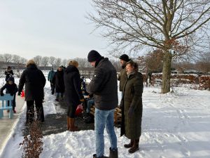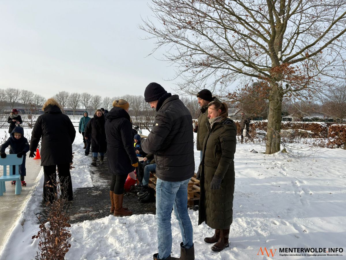 Bertus Arends, voorzitter en ijsmeester van de slapende ijsvereniging De Bouwtekluuners, is ook aanwezig. "20 tot 30 kinderen vandaag zou al mooi zijn." Arends heeft voor hen en ouders warme chocolademelk, warme kwast, koffie en thee klaar staan. Aan het eind van de middag had Arends circa 40 schaatsende kinderen geteld.
