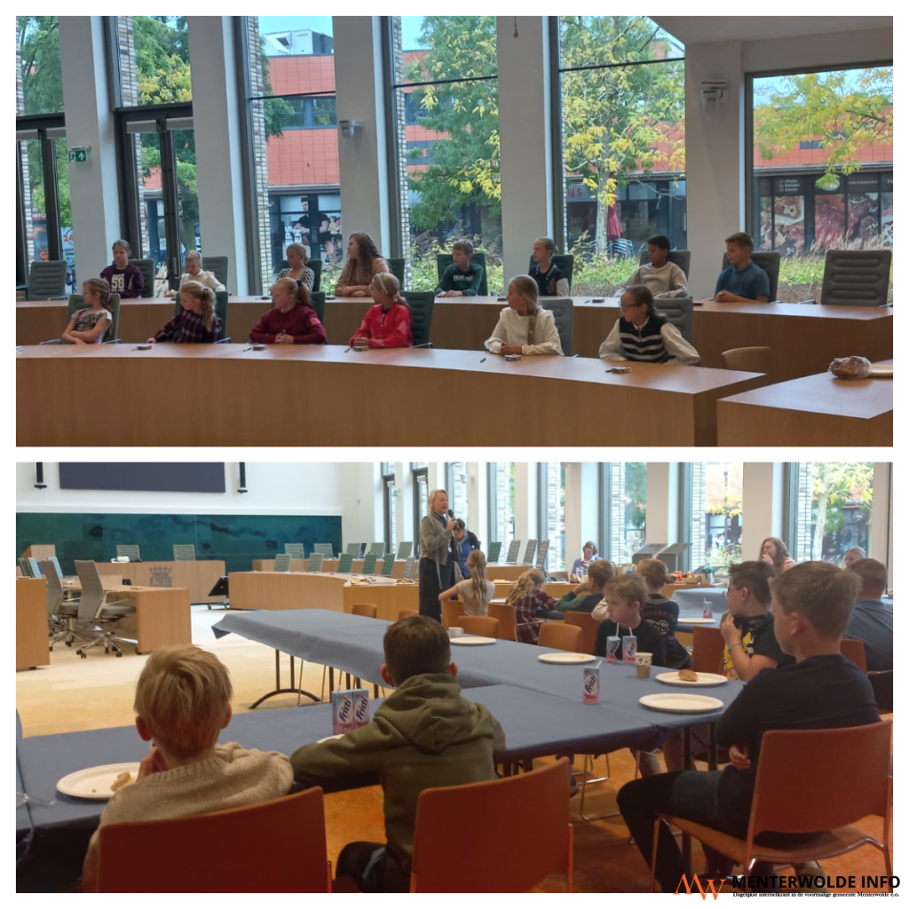 "De burgemeester nam uitgebreid de tijd om met de kinderen te praten en vragen te beantwoorden. De kinderen mochten nog even op de stoelen van de raadleden zitten. Daarna liepen ze door het gemeentehuis en bekeken de kamer van de burgemeester."