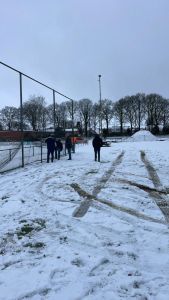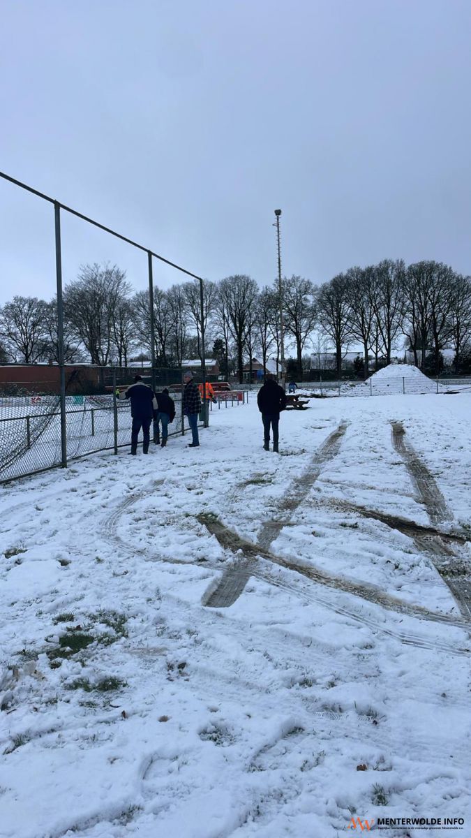 Op het sportpark aan de Zuiderstraat wordt ook gespeeld in de sneeuw.