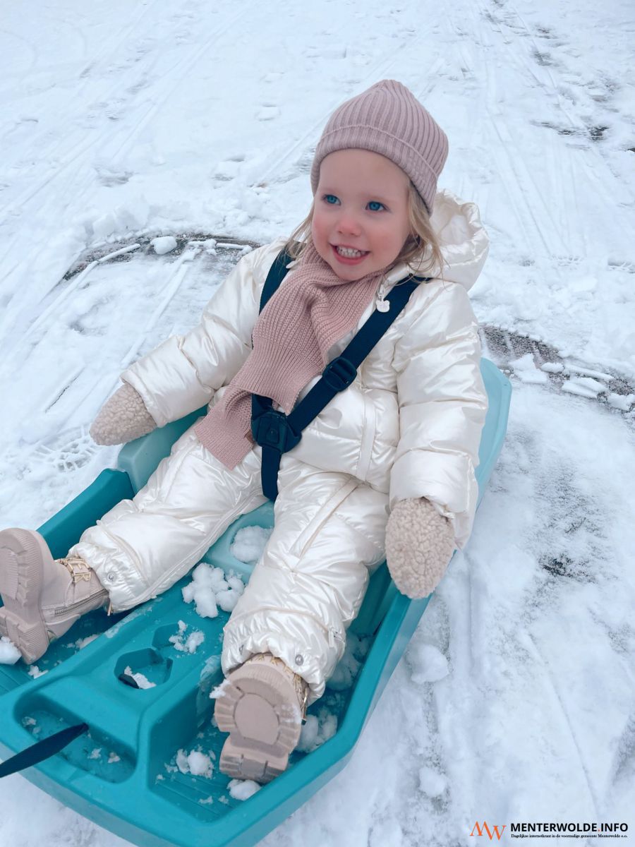 Muntendammer Desney Boekholt maakte een foto van de sleeënde Levi en Kay. "Ze genieten van het sleeën door de straat." (onder, linksboven)