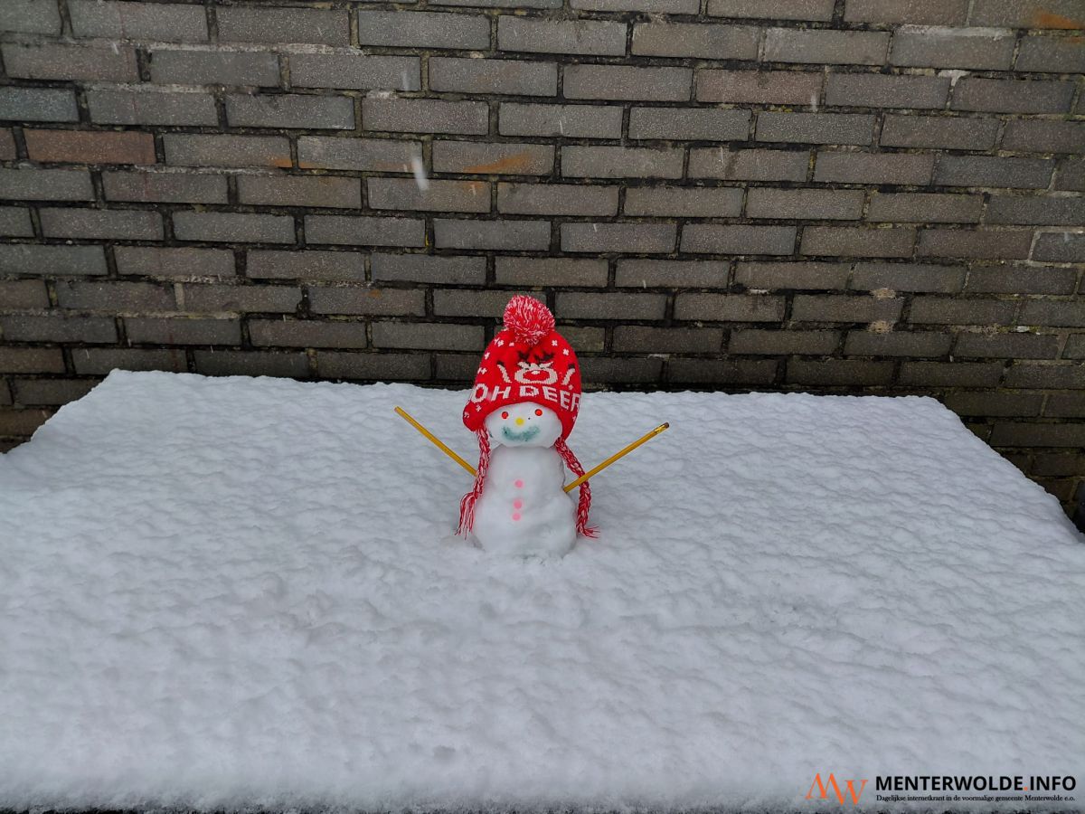 In Meeden zijn - ook aan de Zevenwoldsterweg - in ieder geval 2 sneeuwpoppen gemaakt. De makers poseren trots bij het resultaat. De linker foto is gemaakt door Patricia Tiktak-Woudstra. Op de rechter foto staat de sneeuwpop van Mattijs en Jesse. In Veendam heeft Wubbina ook een sneeuwpop gemaakt. De mini-uitvoering staat bij haar achter het huis. Update: 13.07 uur, nieuwe foto's.