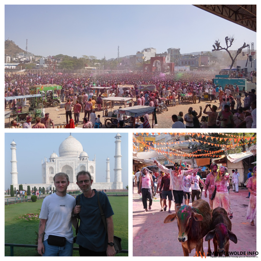 Na bezoeken aan New Delhi, Varanasi (lijkverbrandingen aan de Ganges) en Agra (Taj Mahal) zitten vader en zoon nu sinds maandag (noodgedwongen) in Pushkar. Daar vindt nu het Holi-festival plaats. Zeer kleurrijk. "Maar elk nadeel heeft z’n voordeel. We maken nu het Holi-festival mee in Pushkar. Tienduizenden mensen, een gekkenhuis."