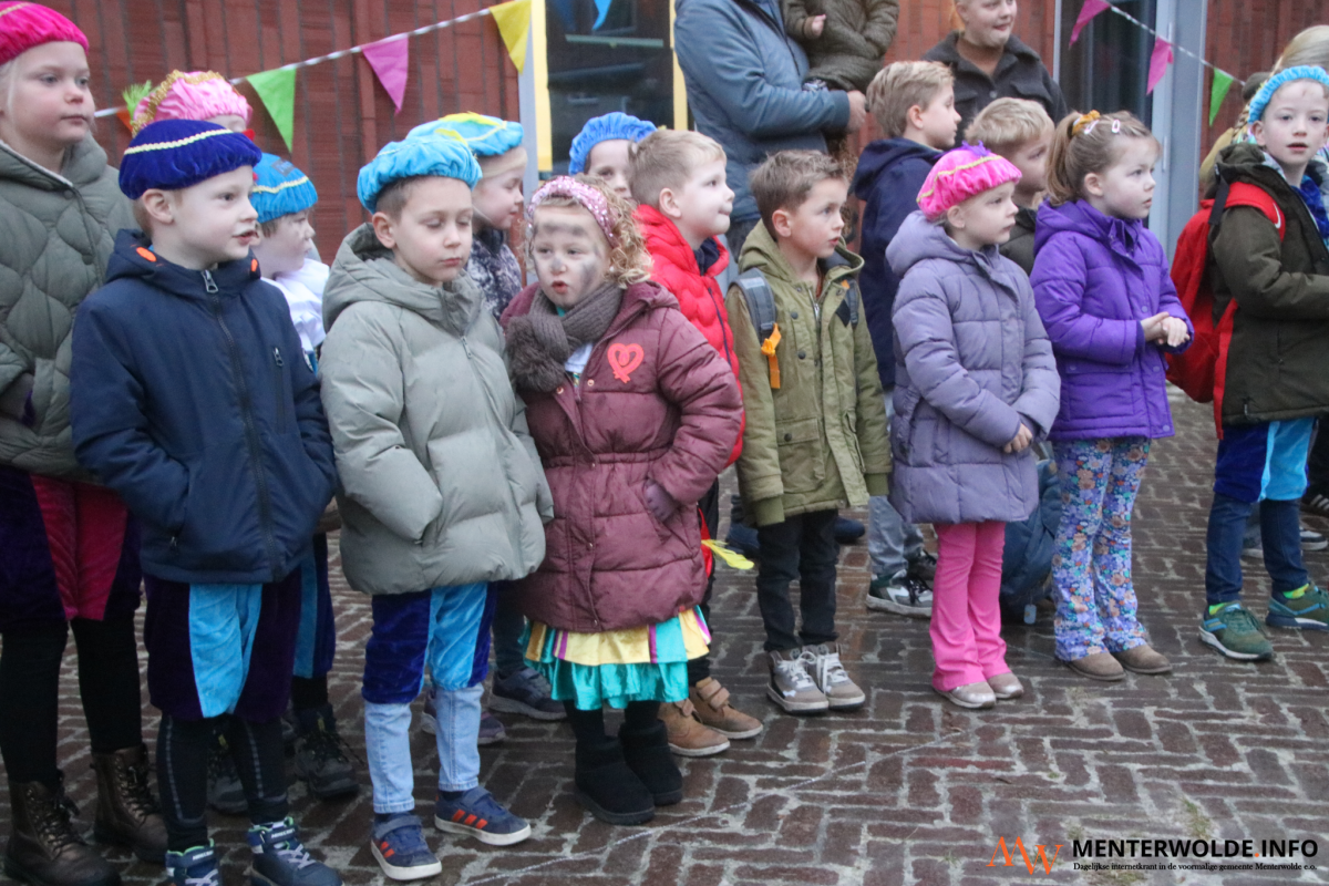 De kinderen waren blij dat Sint met enkele Pieten naar hun school waren gekomen.