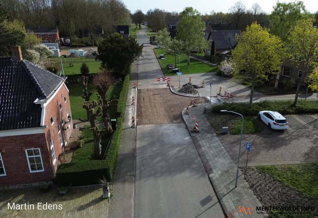 Hier worden de kruisingen aangepakt. Martin Edens maakte 2 luchtfoto's van deze laatste werkzaamheden.