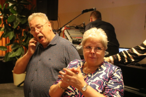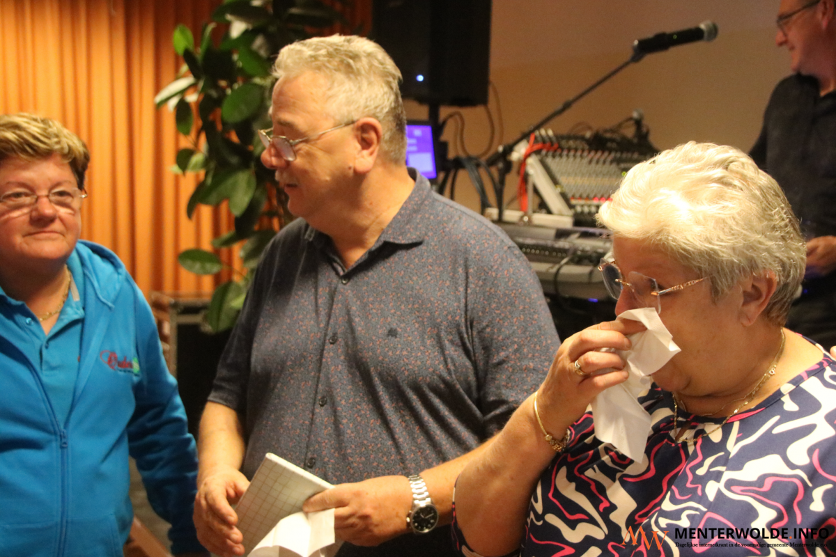 Het Duo Wim en Miranda, dat voor de muziek zorgde, kreeg ook een cadeautje. De 2 staan al 35 jaar op de bühne en zijn bovendien al 29 jaar getrouwd. Ook dat leverde een groot applaus op.