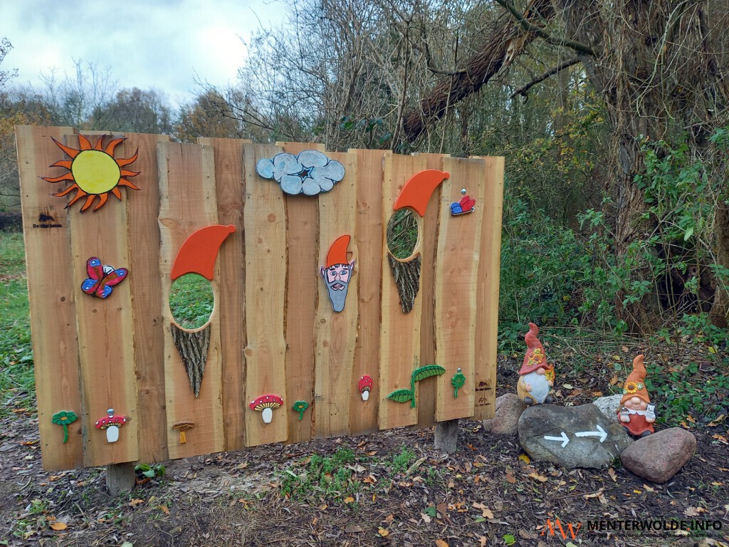 Aan het begin van het pad is er een 'fotomoment' voor 2 wandelaars. Steek je hoofd door het gat en wordt als kabouter vastgelegd.