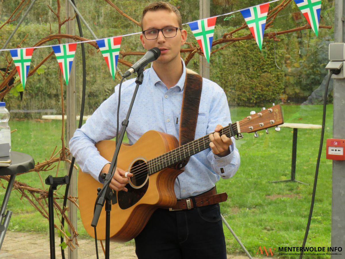Het paviljoen zit vol en ook op het buitenterras zijn de stoelen continue bezet. Binnen treedt de Veendammer zanger Krzysztof Groen op. Hij zingt zowel in het Engels als in het Groningens. Wandelaars zingen zachtjes mee wanneer Groen een lied van Ede Staal zingt.