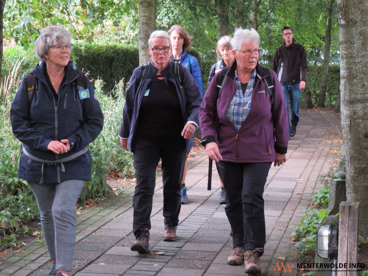 De wandelaars zijn vanochtend vertrokken vanuit Waterhuizen (40 kilometer) of Sappemeer (25) en zijn op weg naar het centrum van Veendam. Met als De Heemtuin als welkome onderbreking.