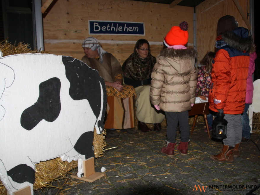 De kerstwandeling die de Baptistengemeente Muntendam vanavond hield in het dorp trok zeker 50 belangstellenden. De wandeling begon om 7 uur vanaf het gemeentehuis en eindigde bij de baptistenkerk. Onderweg zongen koren (kinderen en volwassenen) kerstliederen. De wandelaars kwamen verder een aantal herders, de 3 wijzen en de stal met Jozef en Maria én Jezus tegen.