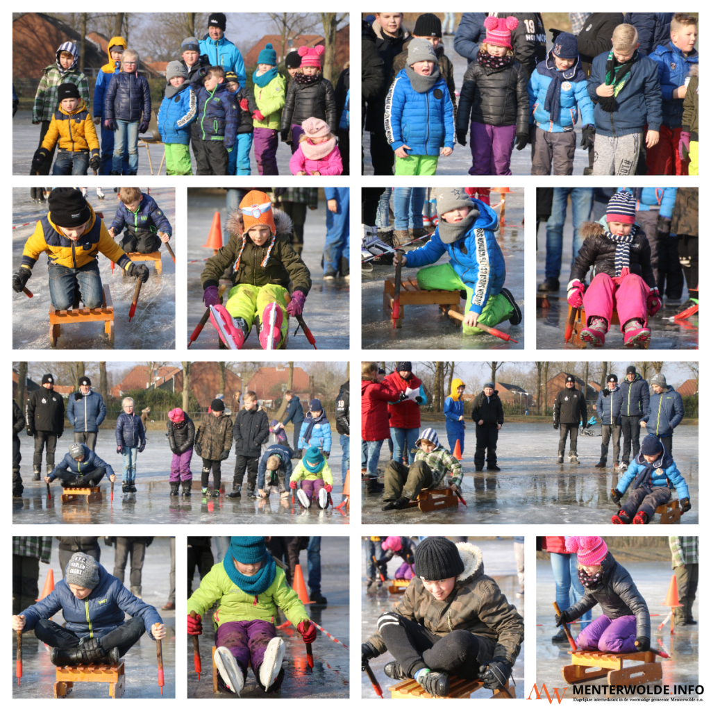 Alle schaatsers - veel gezinnen - op de ijsbaan van Meeden moesten vanmiddag om 3 uur van de ijsvlakte. Het ijs begon te golven. Voor de organisatie aanleiding om de ijsbaan te sluiten. Ze prepareert de baan, zodat die naar verwachting vanavond en morgenvroeg weer open kan. Op hetzelfde moment begon op de ijsbaan van Muntendam het Muntendammer Kampioenschap Priksleeën.