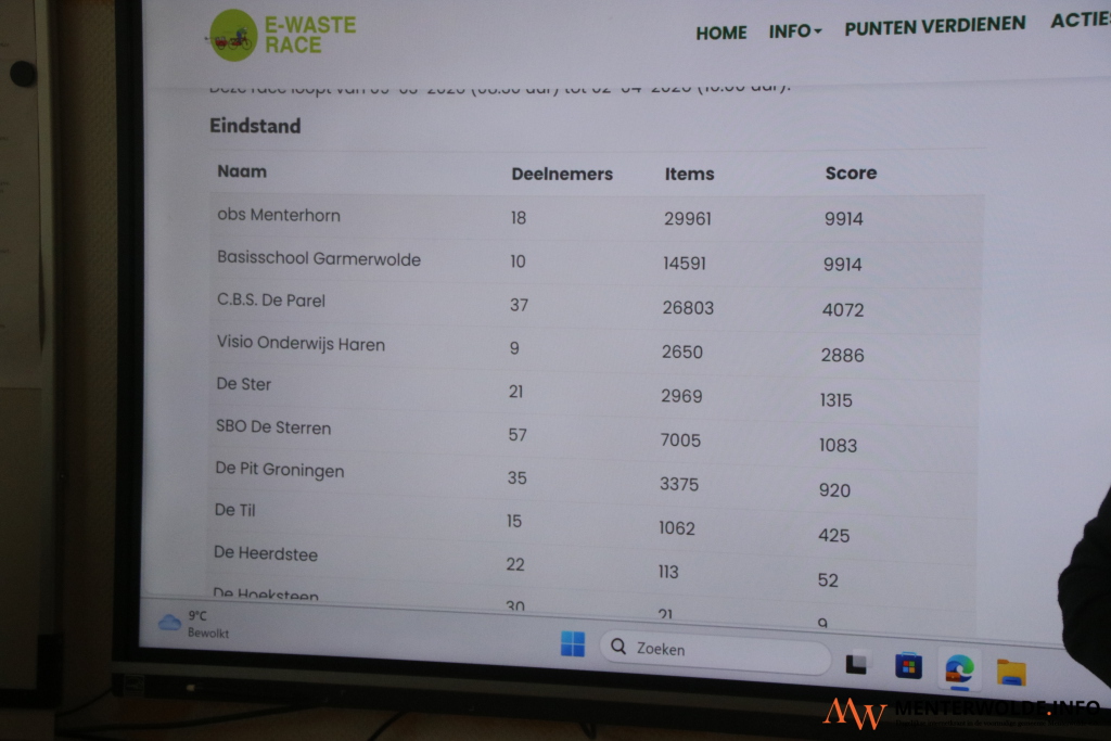 Groep 8 obs Menterhorn wint E-waste Race 2026 en gaat op schoolreisje