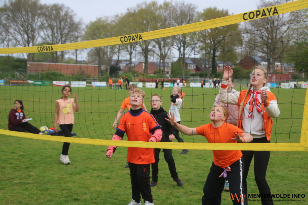 De leerlingen van obs Menterhorn en cbs De Parel in Muntendam leefden zich vandaag, tijdens de Koningsspelen, uit door deel te nemen aan diverse sportonderdelen. Dat gebeurde op de velden van v.v. Muntendam. Voor de jonge Muntendammers stonden onder meer sportonderdelen van volleybal, tennis, voetbal, hockey en tikkertje op het programma. Veel kinderen waren speciaal in het oranje gekleed.