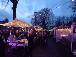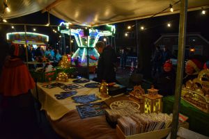 De 3e editie van de Muntendammer Winterfair, voor en in Dorpskerk Muntendam, lokte vanmiddag al vroeg bezoekers. Die schuifelden vanaf 4 vier uur (duurt tot vanavond half 9) langs de 30 standhouders. Die boden een keur aan (kerst)artikelen te koop aan. Dat varieerde van kerststukjes tot kerstartikelen en van streekproducten tot cadeauartikelen. Uiteraard waren er ook kraampjes met etenswaren.