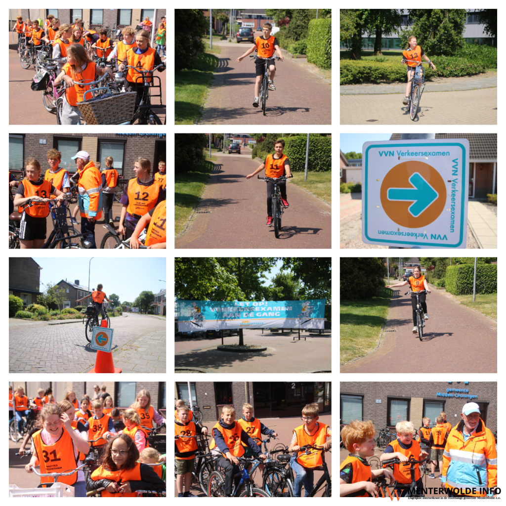 74 leerlingen van Dorpsschool Meeden, cbs De Parel en obs Menterhorn uit Muntendam legden vanmiddag het praktijkgedeelte van het verkeersexamen af. Dat gebeurde in het centrum van Muntendam, met start en finish bij het oude gemeentehuis. De route was, door wegwerkzaamheden, ingekort tot zo'n 3 kilometer. De examenkandidaten waren dan ook al snel klaar met hun ronde door het dorp.