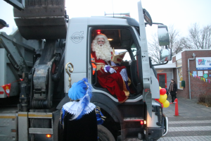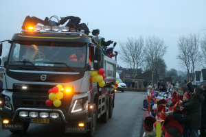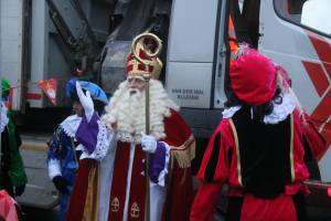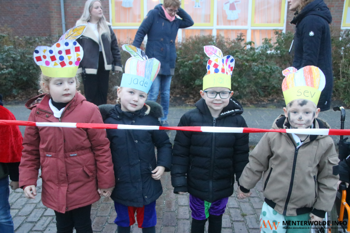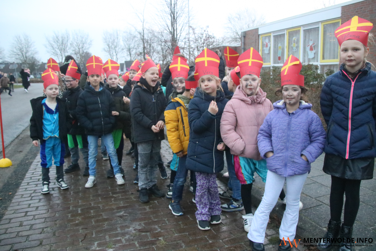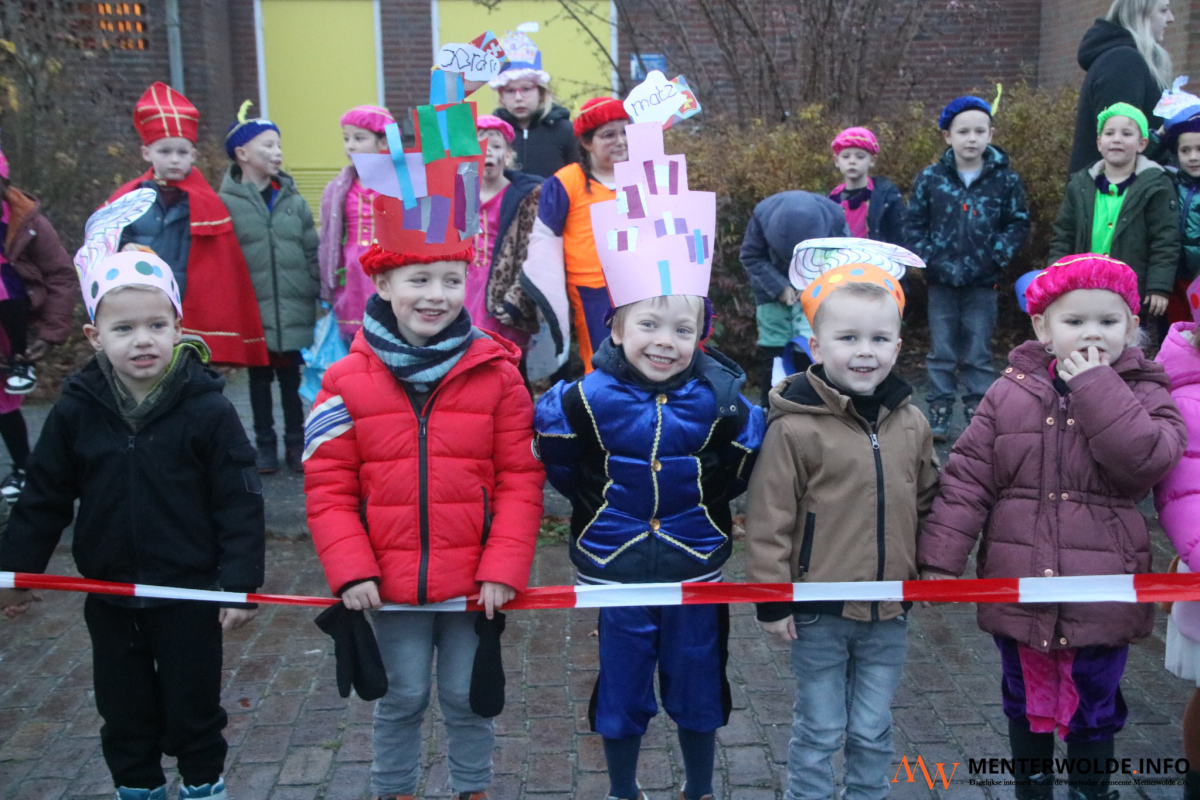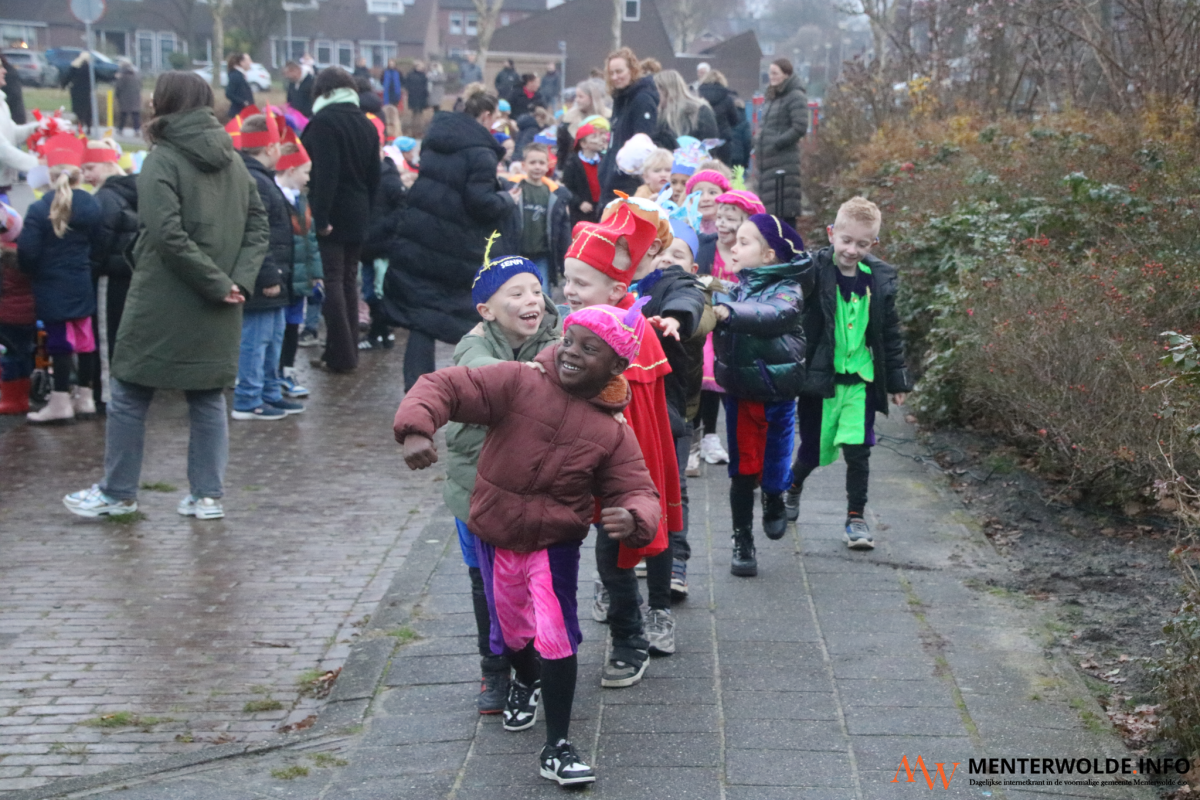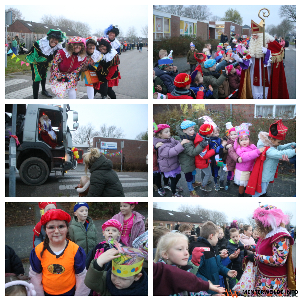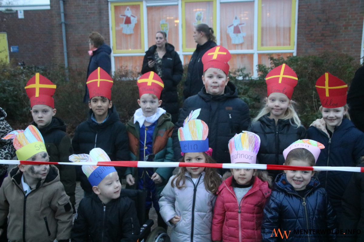 Sinterklaas en zijn Pieten kwamen vanmorgen in en op een vrachtwagen aan bij obs Menterhorn in Muntendam. De 180 leerlingen en (groot)ouders stonden de Sint buiten op te wachten. Voordat de Goedheiligman en zijn Pieten naar binnen gingen, gaf hij een deel van de jongste leerlingen een boks. "Het is ontzettend fijn om hier te zijn", sprak de kindervriend in de microfoon van schooldirecteur Loes Koning.
