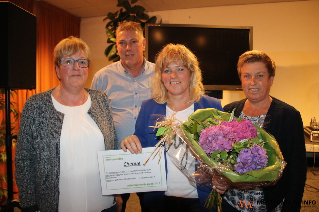 Lammert Meuken (79) uit Muntendam (individu) en het bestuur van Stichting Avondwandelvierdaagse Noordbroek (organisaties, foto onder) hebben vanavond de Vrijwilligersprijs 2017 van Menterwolde gewonnen. De winnaars werden tijdens de Vrijwilligersbedankavond in dorpshuis De Menterne in Muntendam in het zonnetje gezet. Zo'n 170 vrijwilligers waren van de partij. + FOTOREPO.