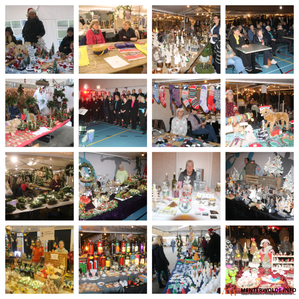 De kerstmarkt van Noordbroek is vanmorgen om 10.00 uur van start gegaan met ruim 80 kramen. Die staan buiten op het schoolplein en in mfc De Noordsuythoeve opgesteld. In de sporthal zingt het zangkoor New Ballad, onder leiding van Ninke Ballema, Imagine van John Lennon. Dat doet het koor onder grote belangstelling. Leerlingen van obs Inspecteur Amerika verkopen kerstartikelen en lootjes.