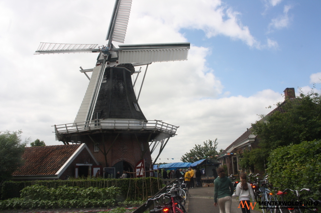 Wethouder Annemiek Hoesen van Midden-Groningen spreekt lovende woorden in de richting van de molenaar en de stichting. MsMOG-voorzitter Reint Huizenga bood Van Doornik een kunstwerk - molen Entreprise gegrafeerd in een glazen bol - aan als herinnering.