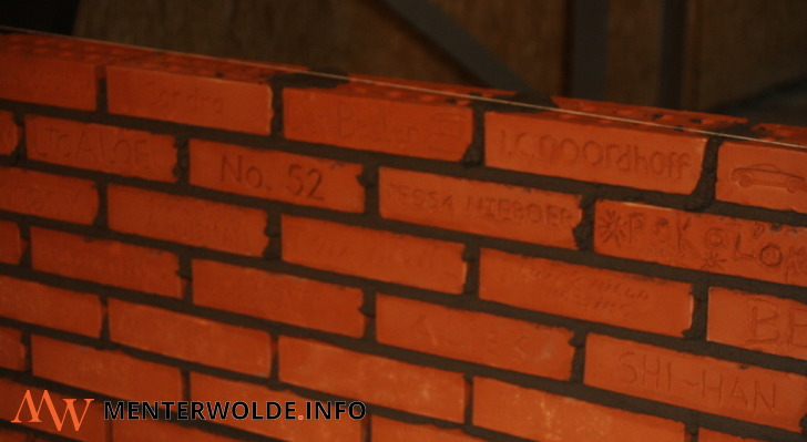 Voor de metselaars Grieto Korthuis en Erik Faber was het vanmiddag, in het in aanbouw zijnde multifunctioneel centrum in Noordbroek, even goed opletten. De 600 stenen, voorzien van (bedrijfs)naam of zomaar een kreet, moesten op hun plaats worden gemetseld. De Dorpsadviesraad Noordbroek verkocht deze stenen in het kader van de actie Ton voor Noordbroek.