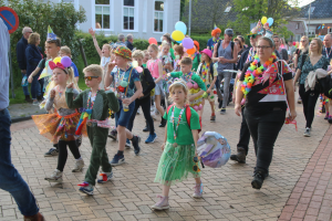 De groep van cbs De Wegwijzer uit Slochteren vielen evenals vorig jaar in de prijzen. Ditmaal waren de wandelaars de best geklede groep. Hun thema? Boerderij.