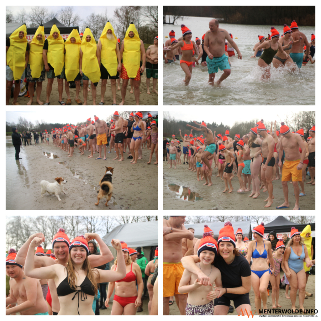 Jong en oud gingen het water in. Het water was 4 tot 5 graden Celsius. Zo warm - of koud zoals u wilt - was het ook aan de kant.