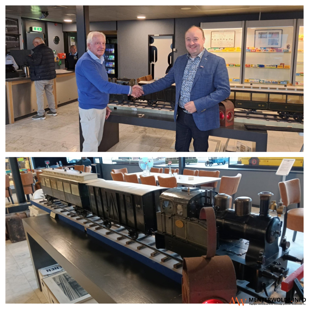 "Dit benadrukt maar weer onze samenwerking", aldus Penning. Hij is blij met de nieuwste aanwinst. En verwacht dat bezoekers die later deze maand al kunnen bekijken. Behalve het voertuig kreeg Penning ook publicaties over kleine treinen.