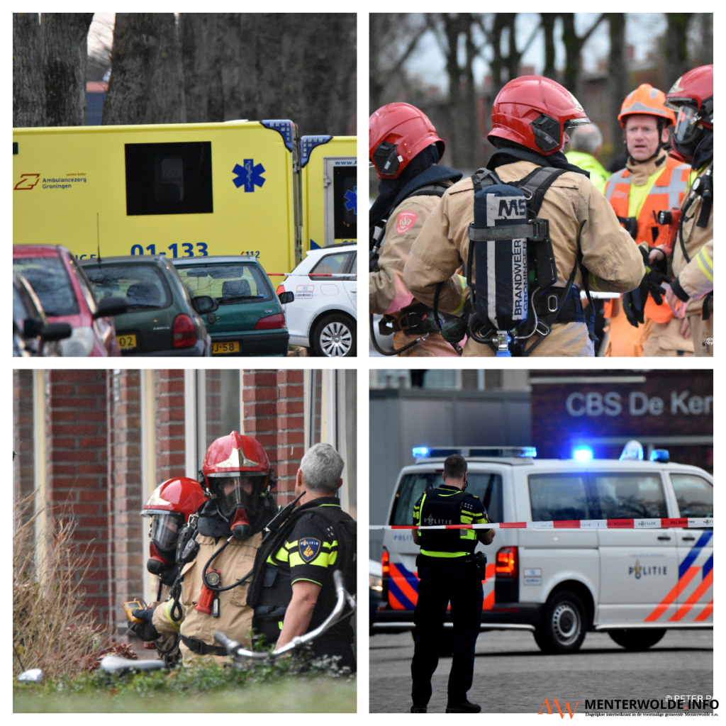 De politie heeft vanmiddag een verwarde man aangehouden in de Vredenrustlaan in Veendam-Noord. Hij vertelde een gaskraan in een woning open te hebben gedraaid. Hulpdiensten - politie (agenten in kogelwerende vesten), brandweer en 2 ambulances - waren aanwezig. Meerdere woningen zouden uit voorzorg zijn ontruimd. De man sloeg ook dreigende taal uit. Foto's: Peter Panneman Fotografie.