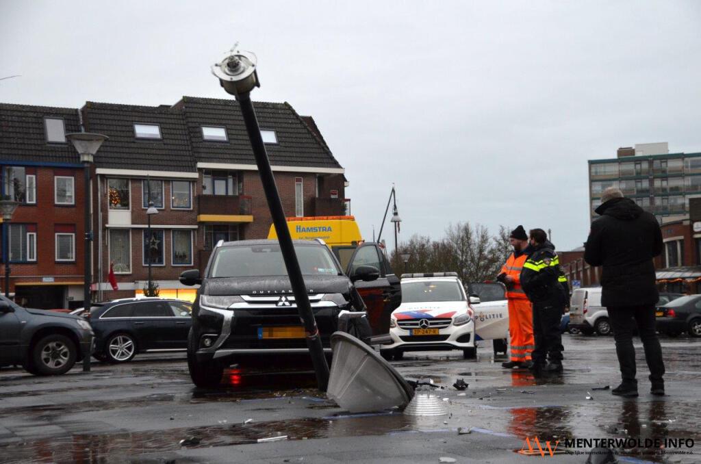 Automobilist botst in centrum Veendam tegen lantaarnpaal