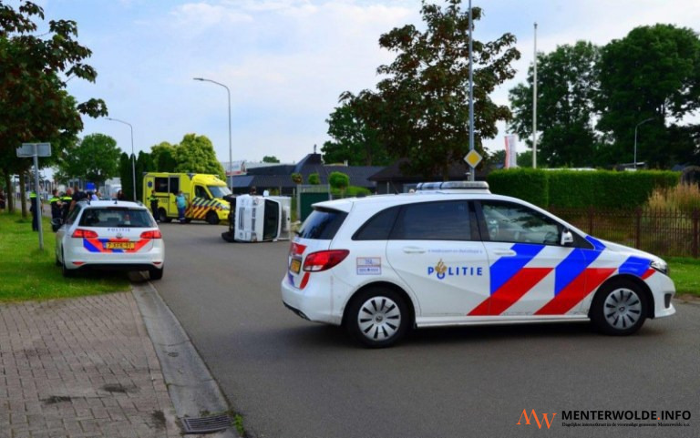 Een bedrijfswagen belandde gisteren aan het begin van de avond op de kruising Transportweg - Somerlustweg in Veendam op zijn zijkant. Hoe dit kon gebeuren, is vooralsnog niet bekend. De bestuurder kon op eigen kracht uit de wagen komen. Ambulancemedewerkers ontfermden zich over de chauffeur. Hij hoefde niet mee naar het ziekenhuis. De weg was tijdelijk gestremd voor het verkeer.
