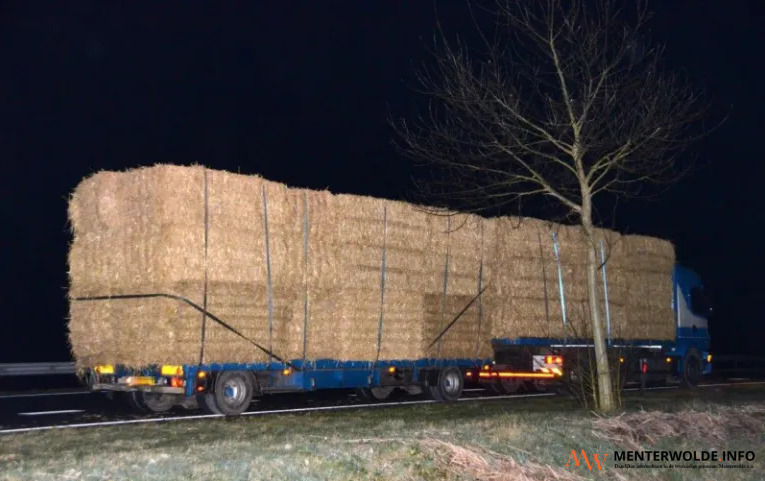 Personenauto botst op N33 achterop vrachtwagen met stro