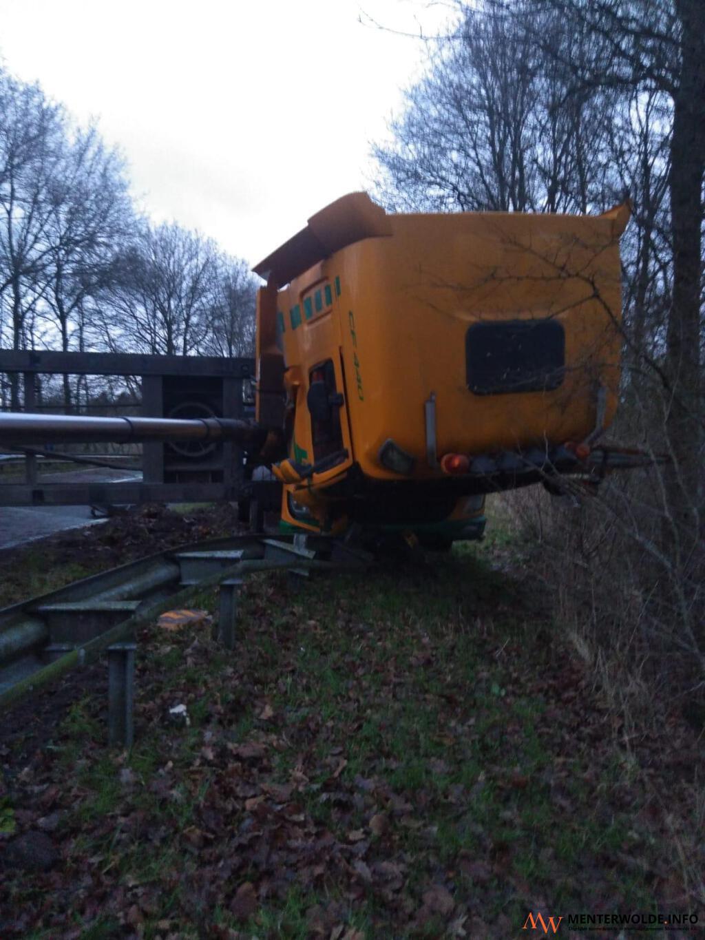 Een vrachtwagen van een Hoogezandster bedrijf heeft vanmiddag zijn lading bieten verloren op de provinciale weg N387 bij Schildwolde. 35 ton bieten liggen over de weg verspreid. De wagen ligt in de volle breedte over de weg. Getuigen vertellen dat er 2 personen - chauffeur en zijn vrouw - in de vrachtwagen zaten. Ze zouden niet gewond zijn geraakt. De hulpdiensten - inclusief traumahelikopter - rukten uit.