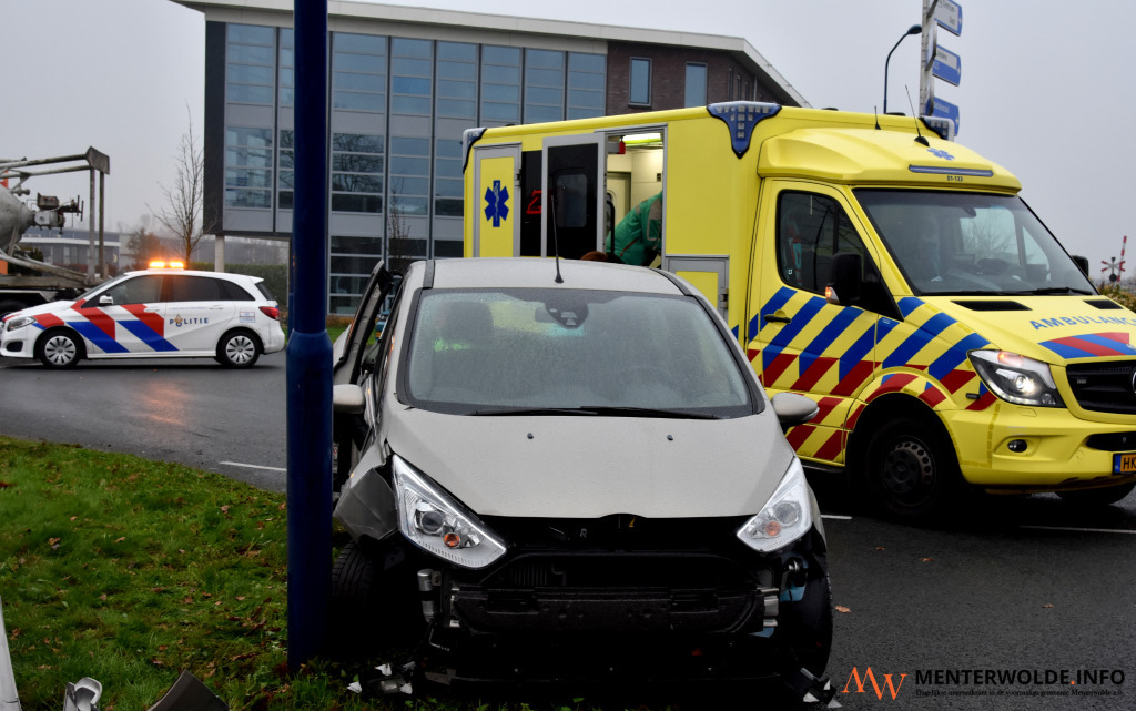 Een automobiliste uit Veendam is vanmiddag, op de rotonde aan de Lloydsweg in haar woonplaats, tegen een lantaarnpaal gebotst. De bestuurster zag een auto, rijdend op de rotonde, over het hoofd. Om een aanrijding te voorkomen week ze uit en botste tegen de lantaarnpaal. De vrouw kwam met de schrik vrij. De auto raakte flink beschadigd.