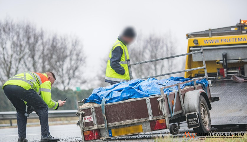 Vanmorgen rolde er op de A7 ter hoogte van Sappemeer, over een afstand van enkele honderden meters, een wiel van een aanhanger over het asfalt. Dit gebeurde rond 10 uur. De automobilist merkte plotseling dat een wiel van de aanhangwagen was afgebroken. Hij zette de wagen aan de kant. Het losgeraakte wiel raakte geen andere voertuigen. De aanhanger was geladen met zand.