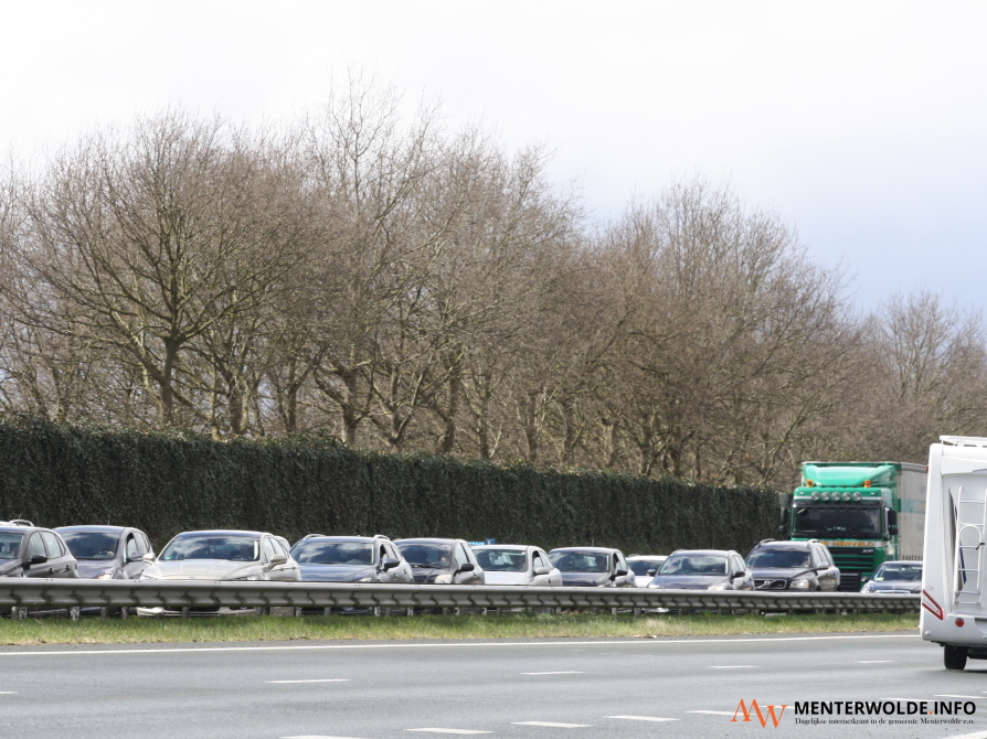 UPDATE (14.00 uur): Rijkswaterstaat denkt dat het herstellen van de beschadigde vangrail in de middeberm lang gaat duren. Voorlopig kan het verkeer er via de af- en oprit langs en is er nog niet zoveel vertraging.