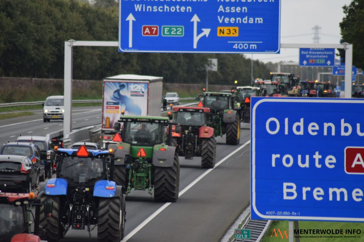 Boeren rijden weer in colonne over A7 voor actie naar Groningen