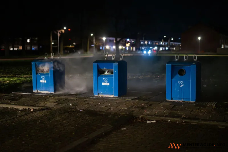 De brandweer van Hoogezand kon direct na de brand aan de Troelstralaan in Hoogezand (zie elders op deze site) doorrijden naar de nabijgelegen Talmastraat. Daar stond een ondergrondse papiercontainer in brand. Kort voordat de brand uitbrak, hadden buurtbewoners vuurwerk gehoord. De brandweer liet de container vol water lopen. Foto's: Venema Media.