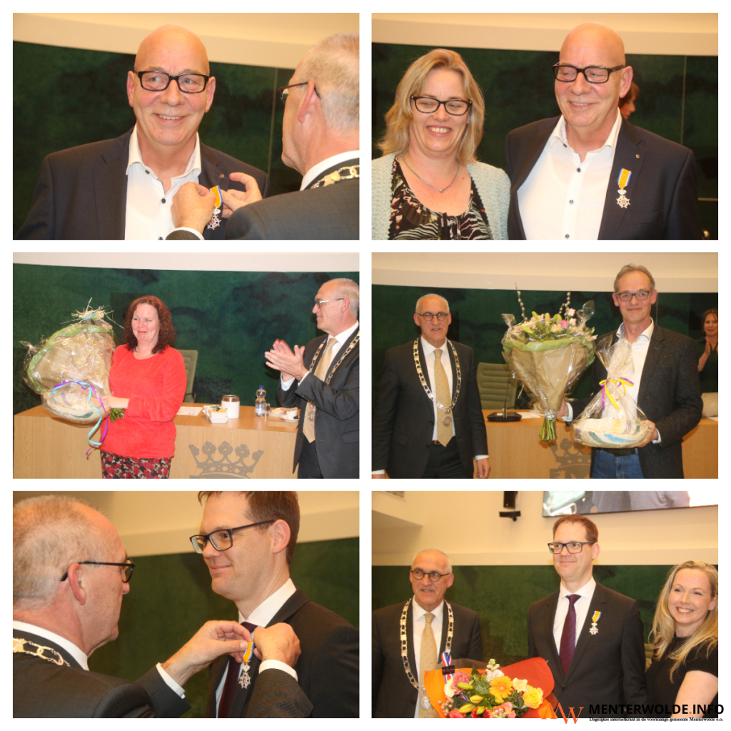 De vertrekkende raadsleden van Midden-Groningen Mieke Bos (VVD, Noordbroek) en de CDA-ers Fré Bos en Maarten van der Meijden mogen zich sinds vanavond Lid in de Orde van Oranje-Nassau noemen. Burgemeester Adriaan Hoogendoorn reikte hen de koninklijke onderscheidingen (K.O.'s) uit tijdens hun laatste raadsvergadering als raadslid in het Huis voor Cultuur en Bestuur.