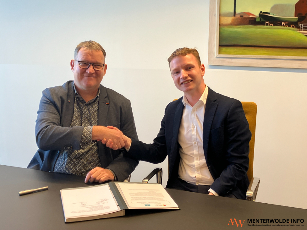 Foto: Jur Mellies (links) en Joost van Galen onderteken de samenwerkingsovereenkomst. Foto: Gemeente Midden-Groningen.