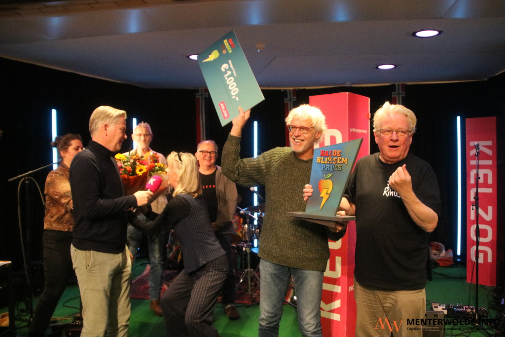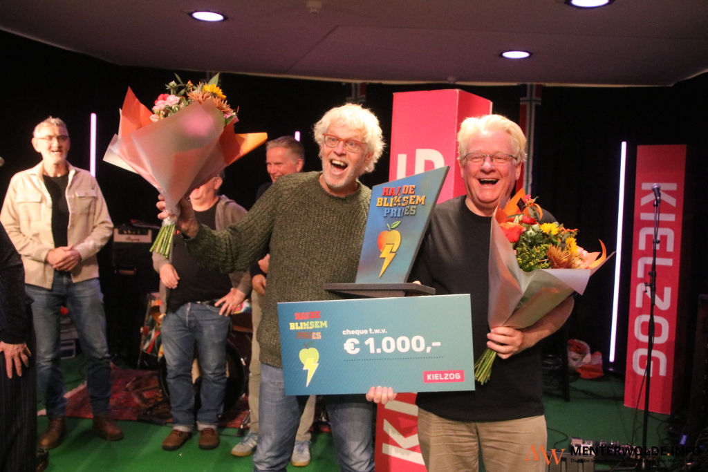 Peter de Haan en Frank den Hollander - in de muziekwereld al 45 jaar bekend als Pé Daalemmer en Rooie Rinus - hebben vanmiddag de Haide Bliksem Award 2025 gewonnen. Het duo kreeg deze prijs uitgereikt door juryvoorzitter Carmen Schilstra tijdens het 5e GRN Festival in Kielzog in Hoogezand. De award is een wisselbokaal. Het duo ging ook met een geldprijs van 1.000 euro naar huis.
