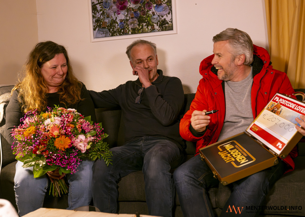 Emmy en Erwin - woonachtig aan de Trekweg in Heiligerlee - waren gisteravond de thuiswinnaars van het tv-programma Postcode Loterij Miljoenenjacht. Winston Gerschtanowitz verraste ze thuis met een cheque van 207.000 euro. Dat is hetzelfde bedrag dat studiowinnaar Berteld uit Gorssel won. Ook de buren uit Heiligerlee, die meespelen met postcode 9677 PJ, vielen in de prijzen.
