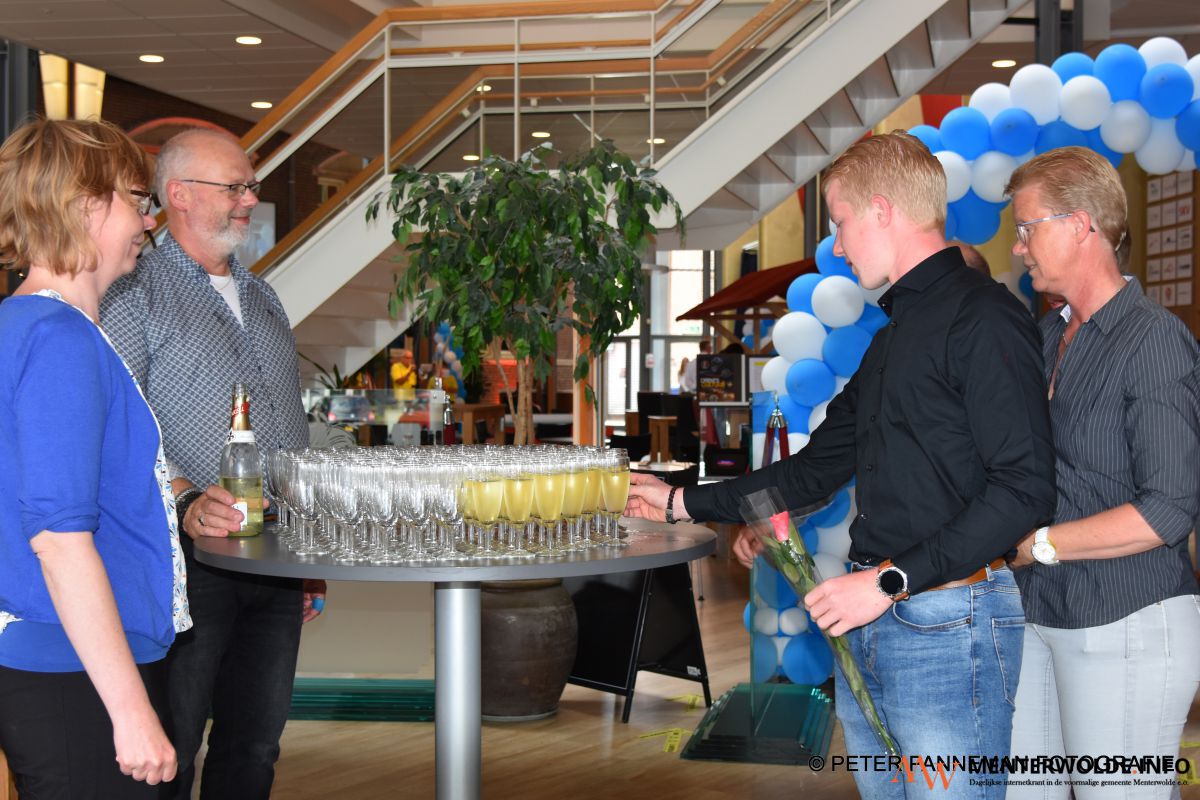 De geslaagden legden een heel traject af voordat het diploma werd uitgereikt. Er werden rozen, stroopwafels, alcoholvrij champagne en lekkere hapjes uitgedeeld.