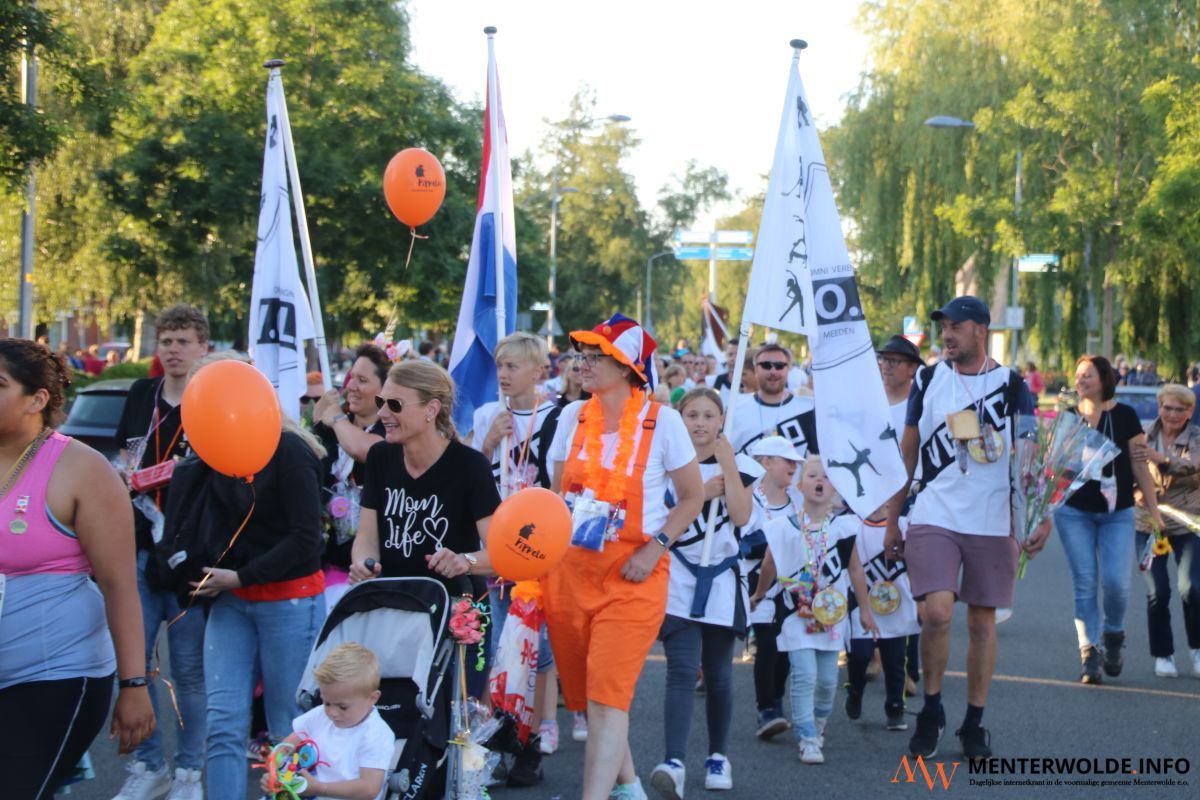 Het Delfzijlster muziekkorps DHO opende vanavond de rij, draaiorgel Zwarte Dorus uit Veendam sloot 'm af. Tussen hen in liepen de 2.110 wandelaars. Die namen deze week deel aan de 61e Wandelvierdaagse van Veendam. De intocht, in het Veendammer centrum, bracht weer veel publiek op de been. Dat had veelal wat lekkers meegebracht voor de (jonge) lopers. Fotoreportage volgt.
