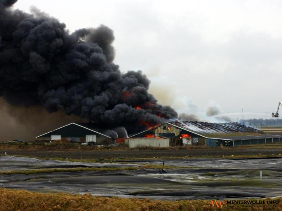 Alle 40.000 kippen in een kippenschuur aan de Jan Kokweg in Veendam zijn vanmorgen door de rook omgekomen bij een brand. De brand in de 80 meter lange schuur brak even voor half 10 uit. De brandweer van Veendam, Oude Pekela en Nieuwe Pekela zijn met groot materieel (wagens en watertransport) uitgerukt. De brandweer kon om 11.40 uur het sein 'brand meester' geven.
