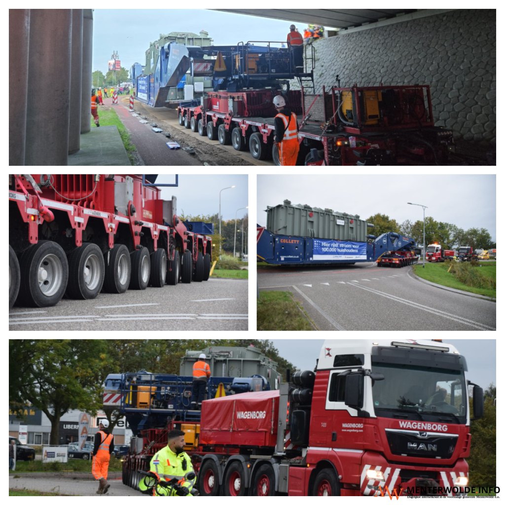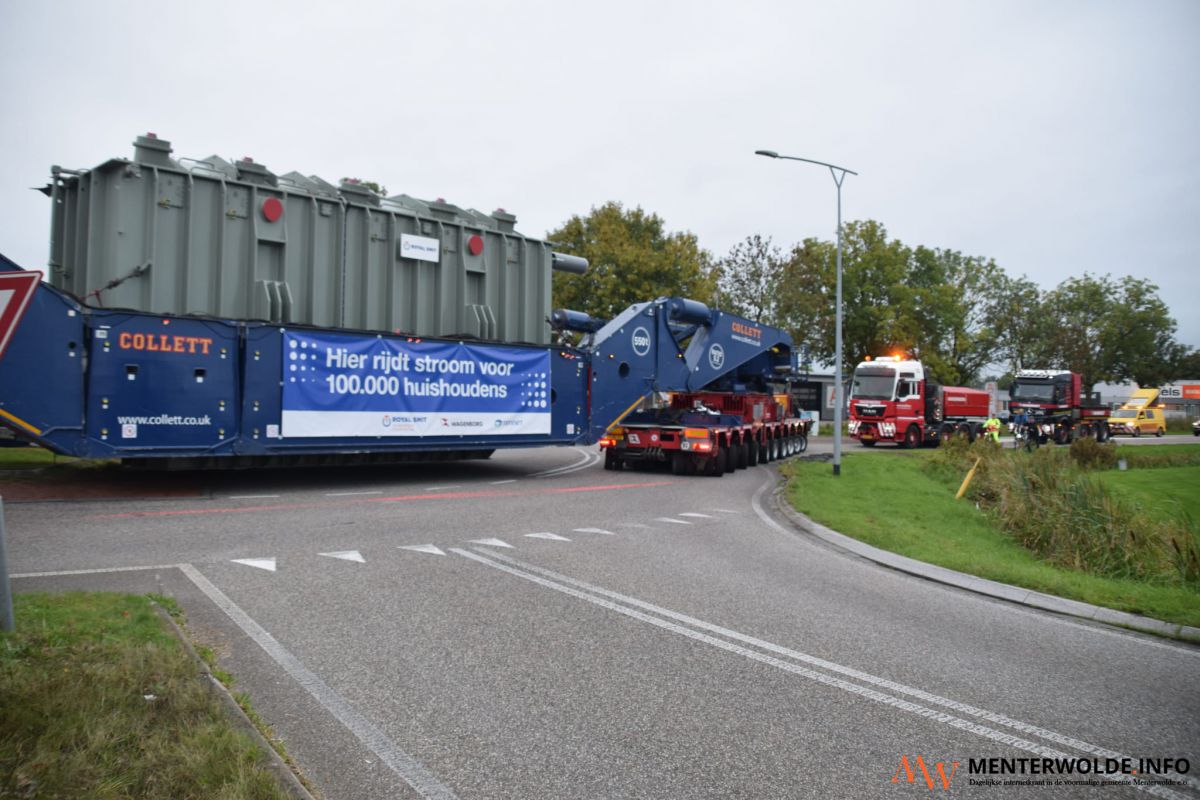 De eerste van in totaal 6 megatransporten van 312.700 kilo wegende TenneT-transformatoren vanuit Veendam - via de provinciale weg N366 - naar Ter Apelkanaal is vanmorgen van start gegaan. De verwachting is dat de transformator (bijna net zo zwaar als een Boeing 747) vanmiddag om 3 uur op de plek der bestemming is. Dat is bedrijvenpark Zuid-Groningen.